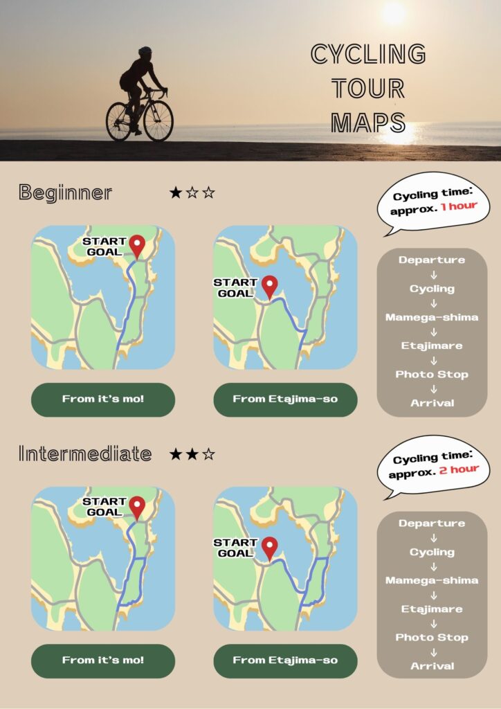 ※You can choose between two cycling routes: a beginner course and an intermediate course.