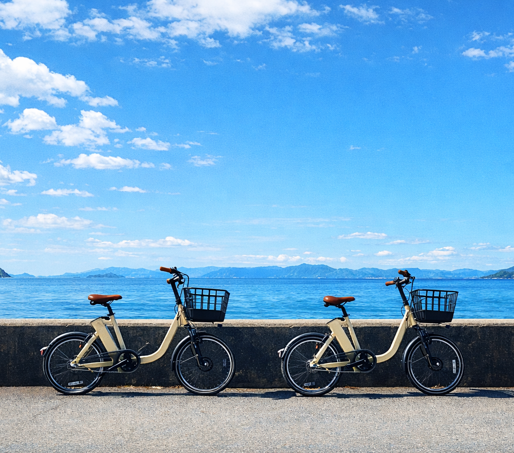 安心の電動アシスト自転車で最大約70kmアシストします。女性やご年配の方も乗り降りしやすいタイプです。なお、乗車するにあたり原付等の免許は必要ございませんのでご安心ください。